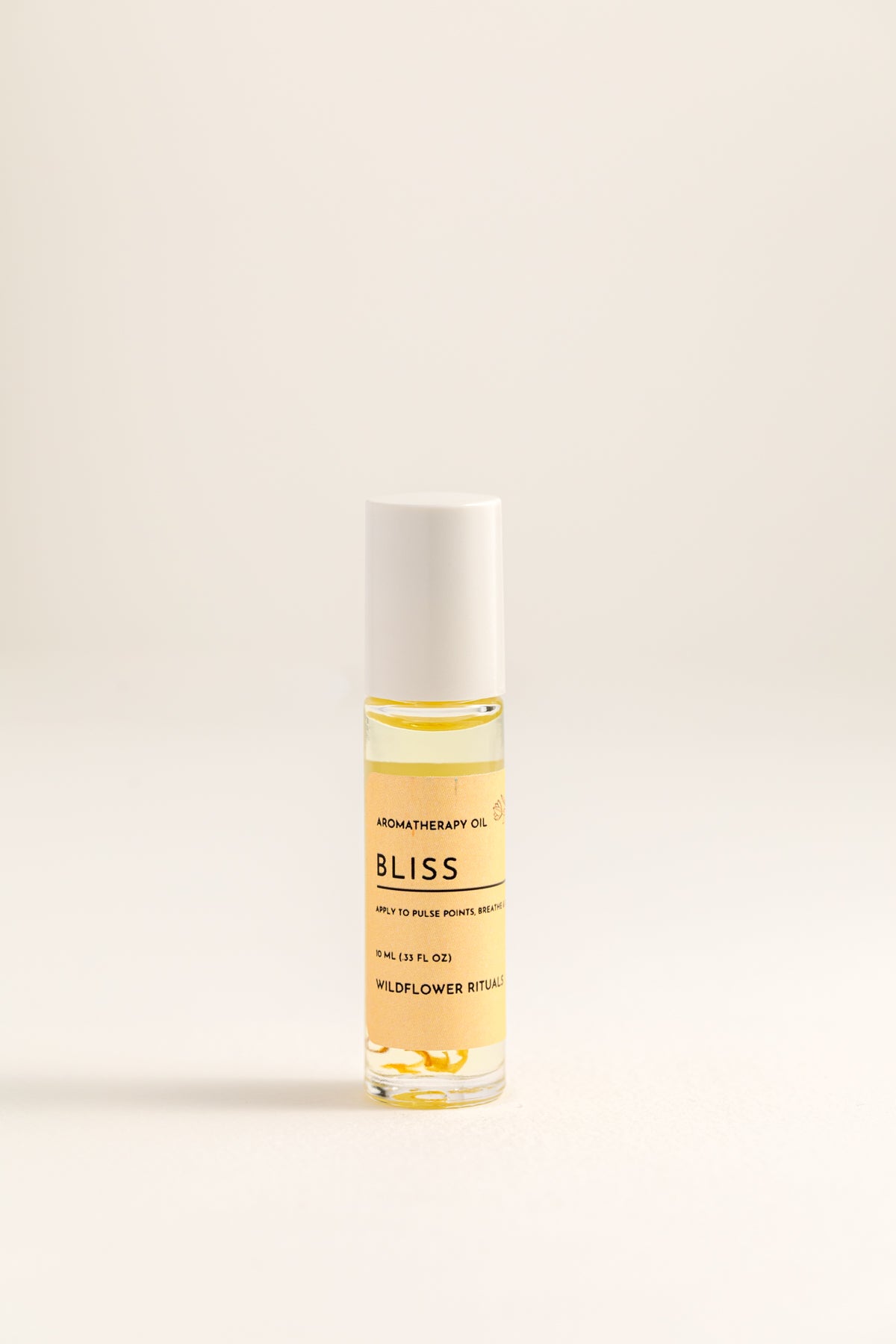 Elevate your mood instantly with our Bliss Aromatherapy Oil Roller. Bright orange meets exotic jasmine and warm sandalwood in nourishing jojoba oil for a sweet, uplifting experience that sparks creativity and brings joy to any moment.
